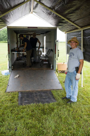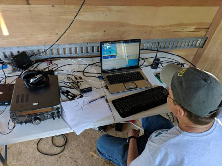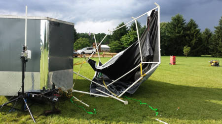 Though some stations were late getting on the air, all the stations made contacts with amateurs in North America and other parts of the world. However, as things started to run smoothly Mother Nature threw us a curve ball. The National Weather Service issued a severe thunderstorm warning for our site. As the FARA crew started to secure the site for safety reasons the warning turned into a tornado warning. The team abandoned the site quickly for safer shelter or home.