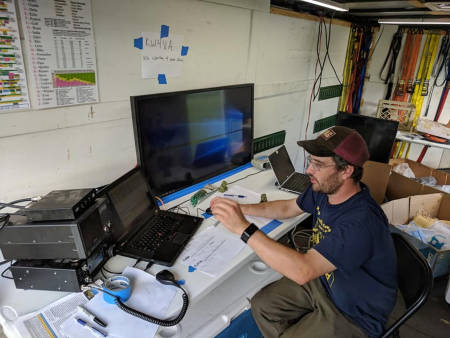 This year the members of FARA again assembled their gear and emergency power at C.M. Crocket Park in Midland, VA to participate. This year’s effort was led by David, KK4UYX. Set up began in the early morning with KK4UYX getting the network up plus something new this year, an internet connection.
