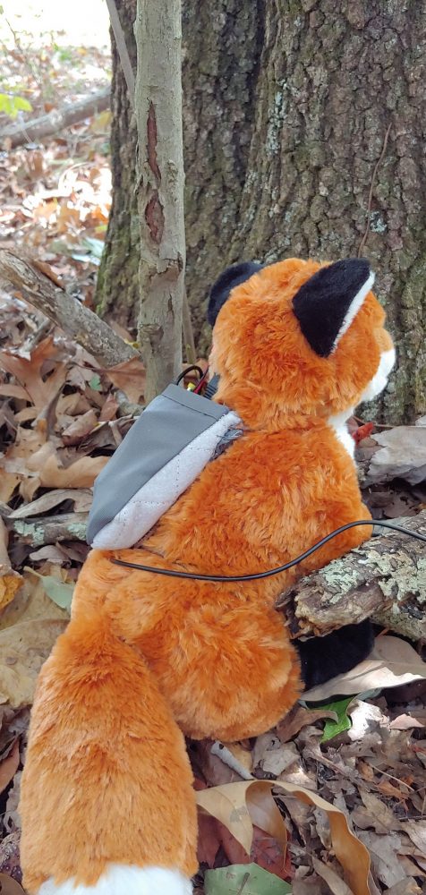 The fox set up was a Byonics MicroFox2 along with an inexpensive countdown timer purchased from ebay. The countdown timer allowed N7IVV to place the fox and then allowed him time to drive back to the hunter assembly areas and at the designated time. The set was powered by a rechargeable LiPo pack and it was all held together with rubber bands.