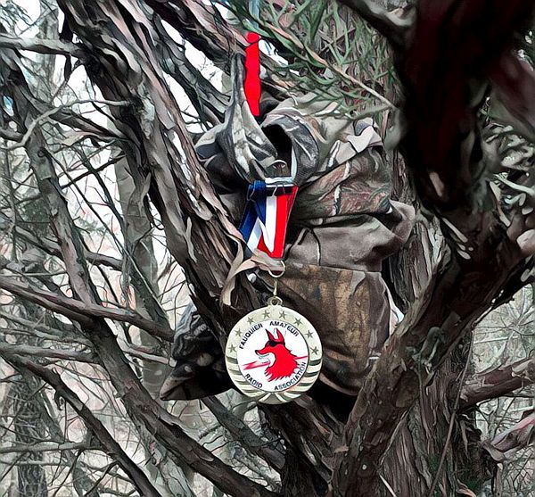 The signal led the hunters to a parking area behind the Moo Thru in Remington, and into the SFSSC Disc Golf Course. After wending around the trails of the course, most of the hunters arrived together in the same general area – each one pointing antennas and adjusting attenuators frantically during the 20-second transmissions. As John, KX4O, stood in front of a tree next to the trail he was heard to exclaim “Aha!” as he located the well-concealed Fox. Congratulations, John!