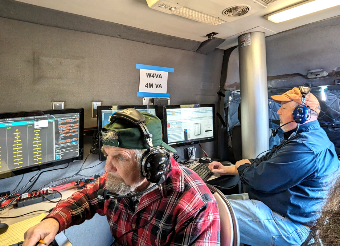 As a 4M operation with 4 HF and 3 VHF antennas set up in the front field of the park, Justin’s rover housed 2 HF stations while Nic, KY4OP, brought the Fauquier 4-H club radio and STEM trailer fully equipped with an HF station as well as a VHF all-mode satellite station. After a few hours of setup following our monthly club breakfast, we were ready to go!